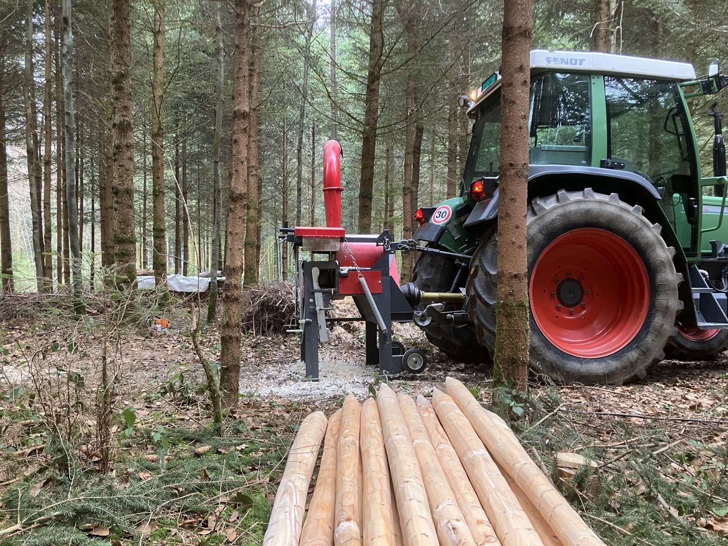 Mit dieser Maschine schälen und spitzen Sie Pfähle aus Rundholz von 3 cm bis max. 25 cm stufenlos.
